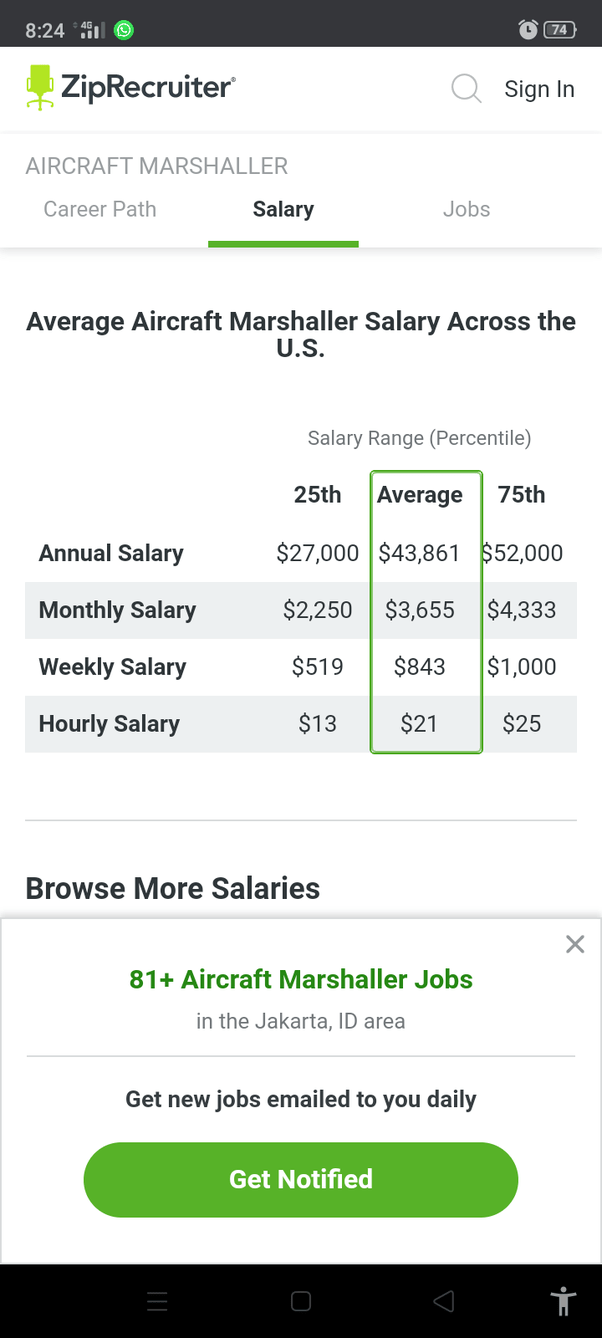 Itulah sebabnya, gaji marshaller sedikit berbeda dengan tukang parkir kebanyakan. Sebagian orang mungkin masih asing dengan istilah marshaller. Bila tugas dan gaji tukang parkir pesawat membuat anda jatuh cinta pada profesi ini, siapkan diri menjadi marshaller . Dihimpun dari situs pekerjaan ziprecruiter.com, seorang juru parkir pesawat akan menerima gaji $43.522 per . Meskipun belum sempat kerja sebagai .
